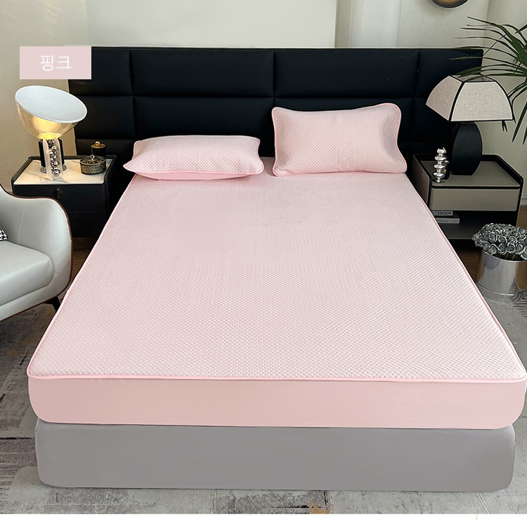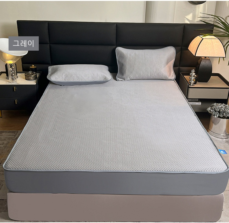 단색 아이스 실크 쿨링 실크 퀼트 매트리스 커버 3종 세트